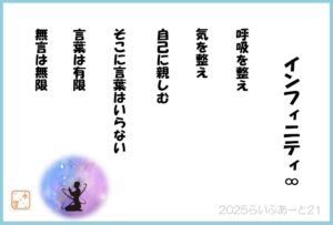 呼吸を整え気を整え自己に親しむそこに言葉はいらない言葉は有限無言は無限