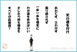 天の道を行け! 2025/8/26 2025/8/26 2025, 詩集 慌てず、騒がず振り回されず一歩一歩を確実にわが道を歩めそしたら時も機会もすべてが応援団! らいふあーと21~僕らは地球のお世話係~